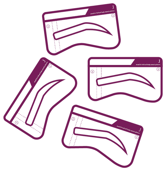 Each kit includes 9 brow stencils so you have options for short, regular, or long brows as well as shapes for thin brows or full. To find your perfect stencil shape, simply hold each stencil up to your eyebrow. When the tail end, arch, and front of your eyebrow are aligned, or close to aligning, with the stencil cut-out then that is the shape for you!